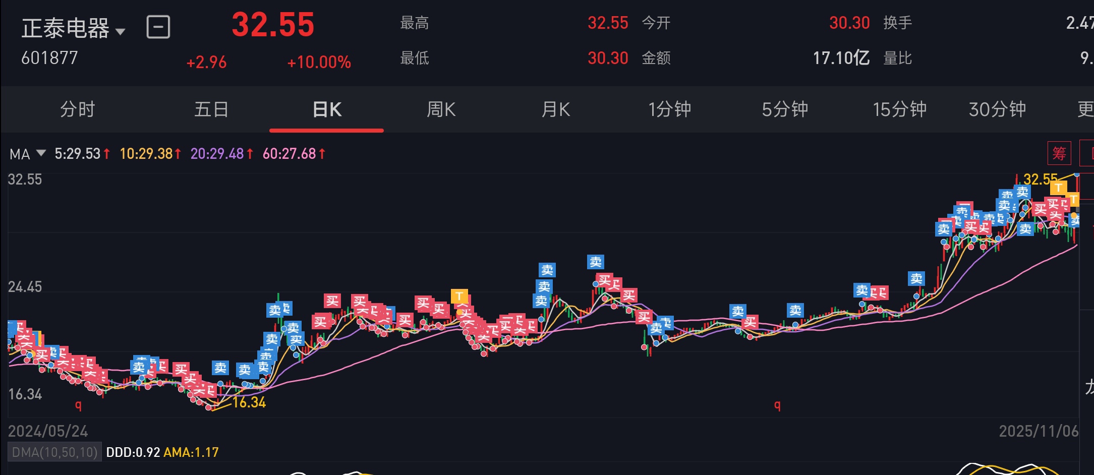 $正泰电器(SH601877)$ 嗯,看看我们是从什么时候买的