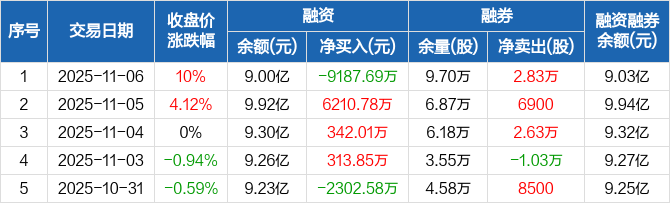 正泰电器:融资净偿还9187.69万元,融资余额9亿元(11-06)