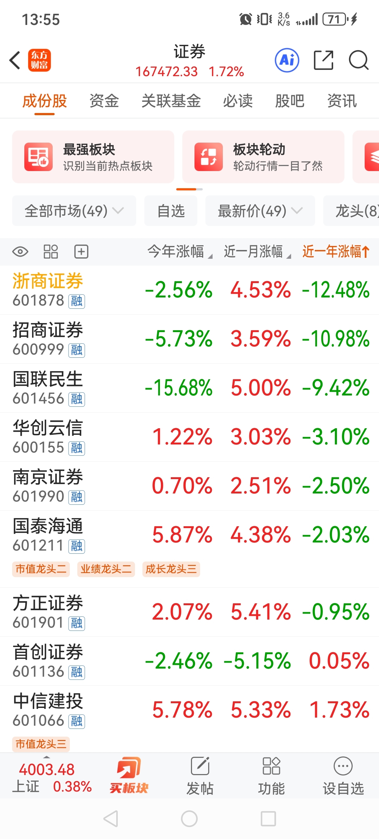 $浙商证券(SH601878)$ 仍然是倒数第一