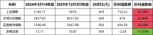 鄙人2024年5月14号13.26买进,当天上证指数收盘3145.77点;沪深300指数3657.05点,今天沪深300说盘4531.05点;证券板块指数1240.49点,今天收盘1667.08点;到今天持仓时间569天,今天上证指数3878点,我特意做了个表格对比,大家帮我分析下我是哪里做错了,承受这么大的痛苦,谢谢大家!