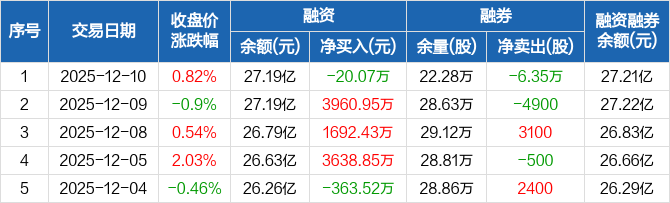 浙商证券:融资净偿还20.07万元,融资余额27.19亿元(12-10)