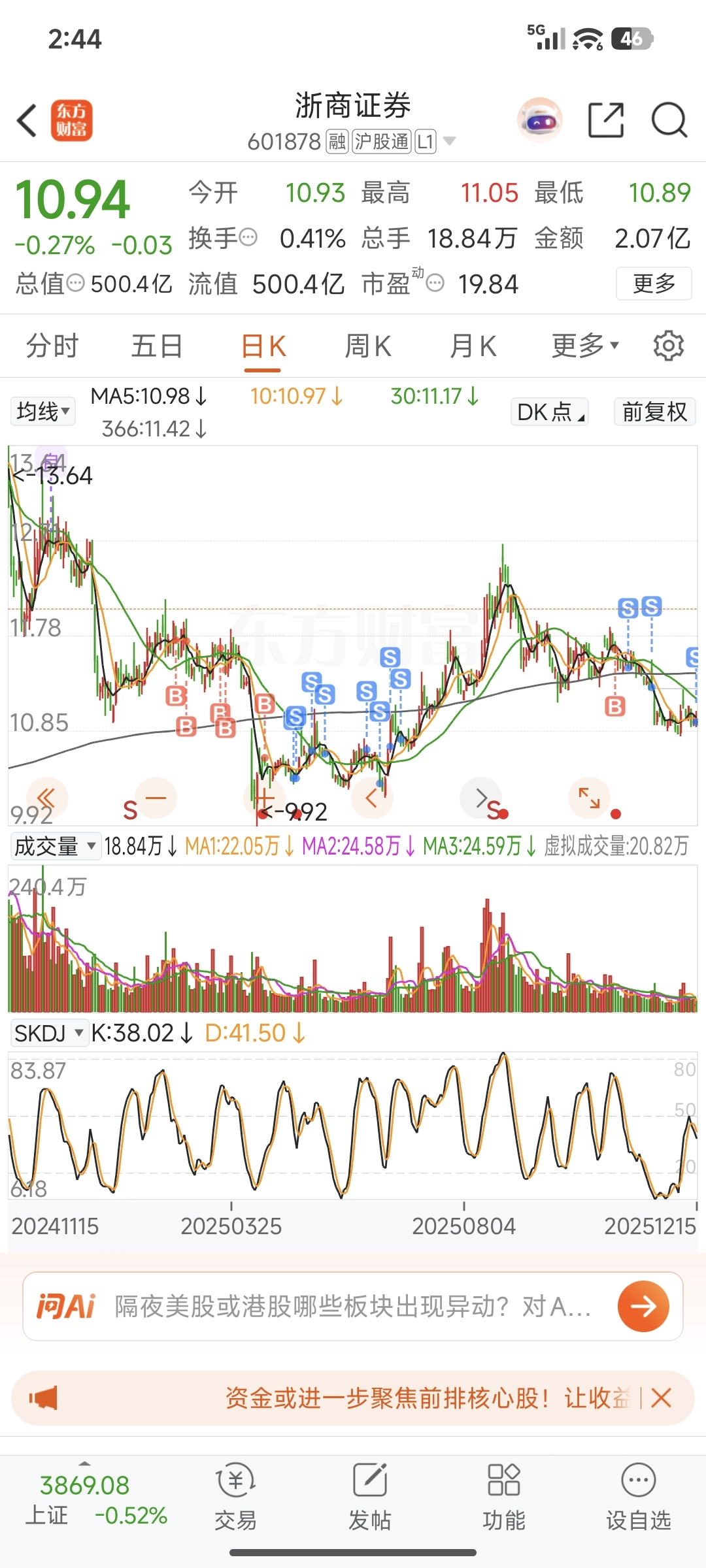$浙商证券(SH601878)$ 溜了溜了,一年下来亿点点不涨,还倒亏,去