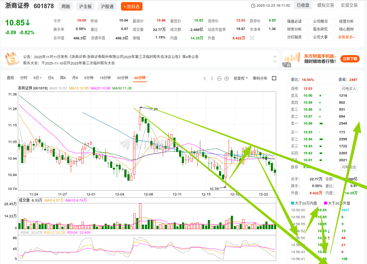 竟然不能上一笔破11.26,然后又跌破了10.91那么迅速的往下,跌破10元,完