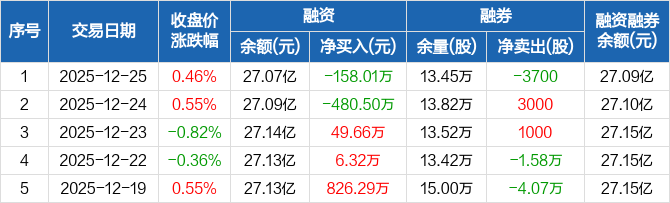 浙商证券:融资净偿还158.01万元,融资余额27.07亿元(12-25)