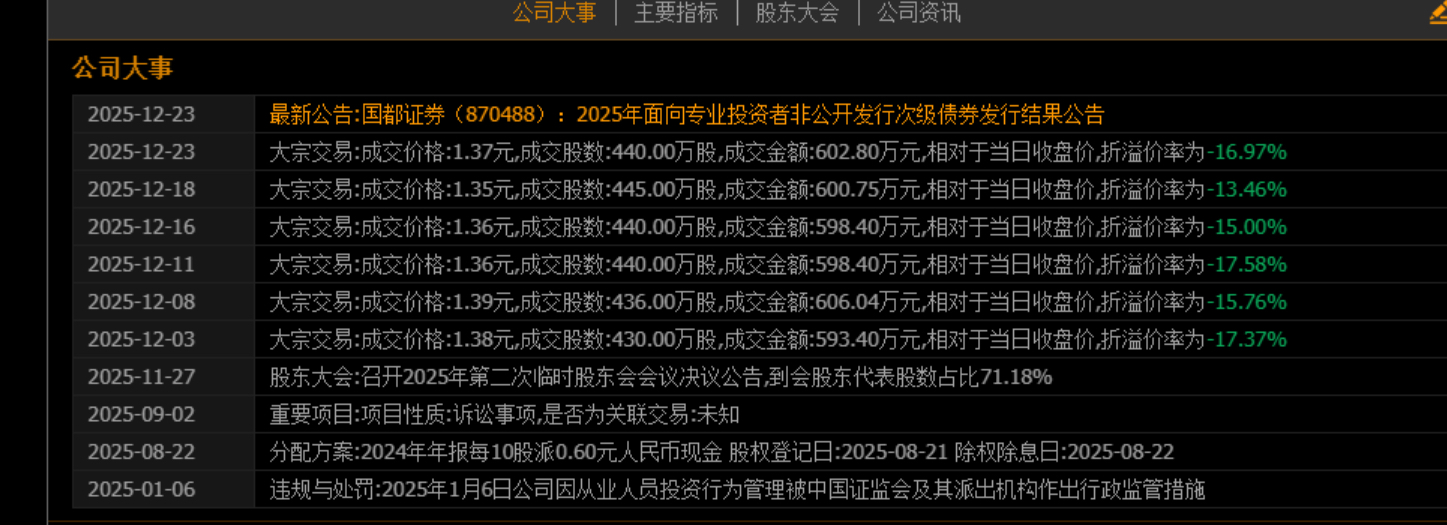 看看国都从3号开始不停大宗交易,全部大幅低于现价!
