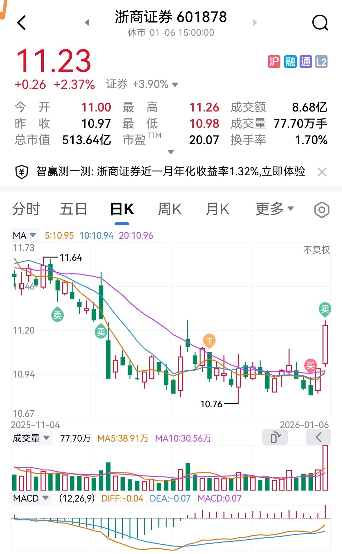 $浙商证券(SH601878)$ 放量又怎样,走你的,底仓陪你玩。25年亏损最大的票。26年再也不格局你,我记仇。