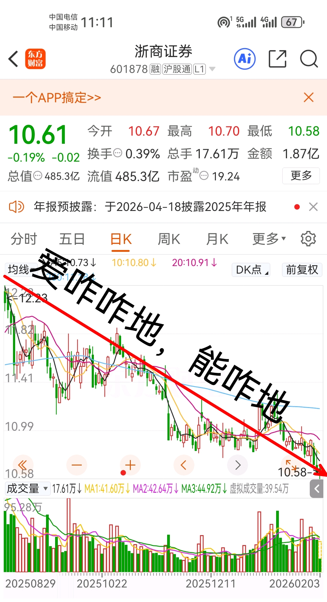好倔强的浙商证券,就一个劲往下钻!能咋地,你能咋地,爱咋地咋地!