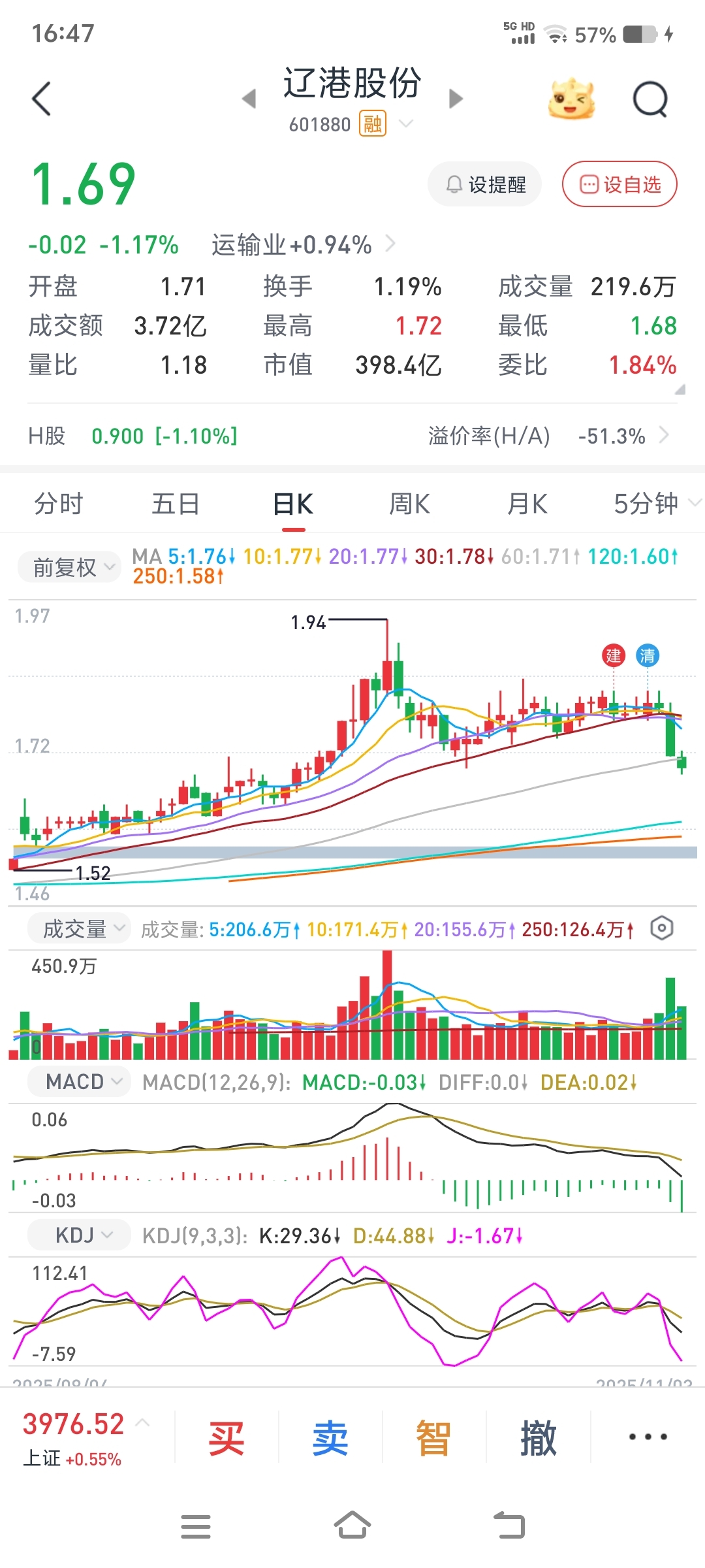 $辽港股份(SH601880)$ 吃一口就跑,差一点被埋