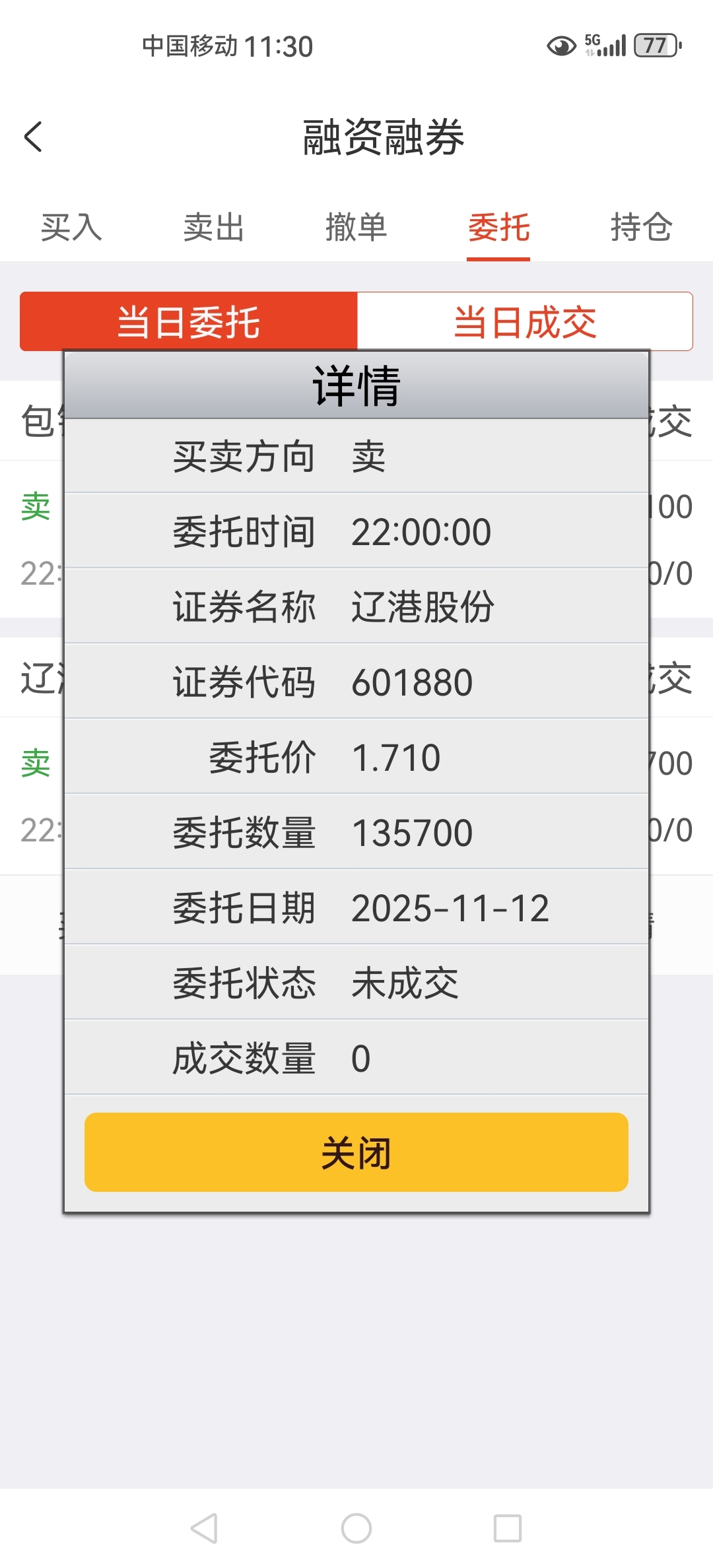 $辽港股份(SH601880)$ 昨晚10准时排队,上午1股没卖。下午能卖出去吗,。?