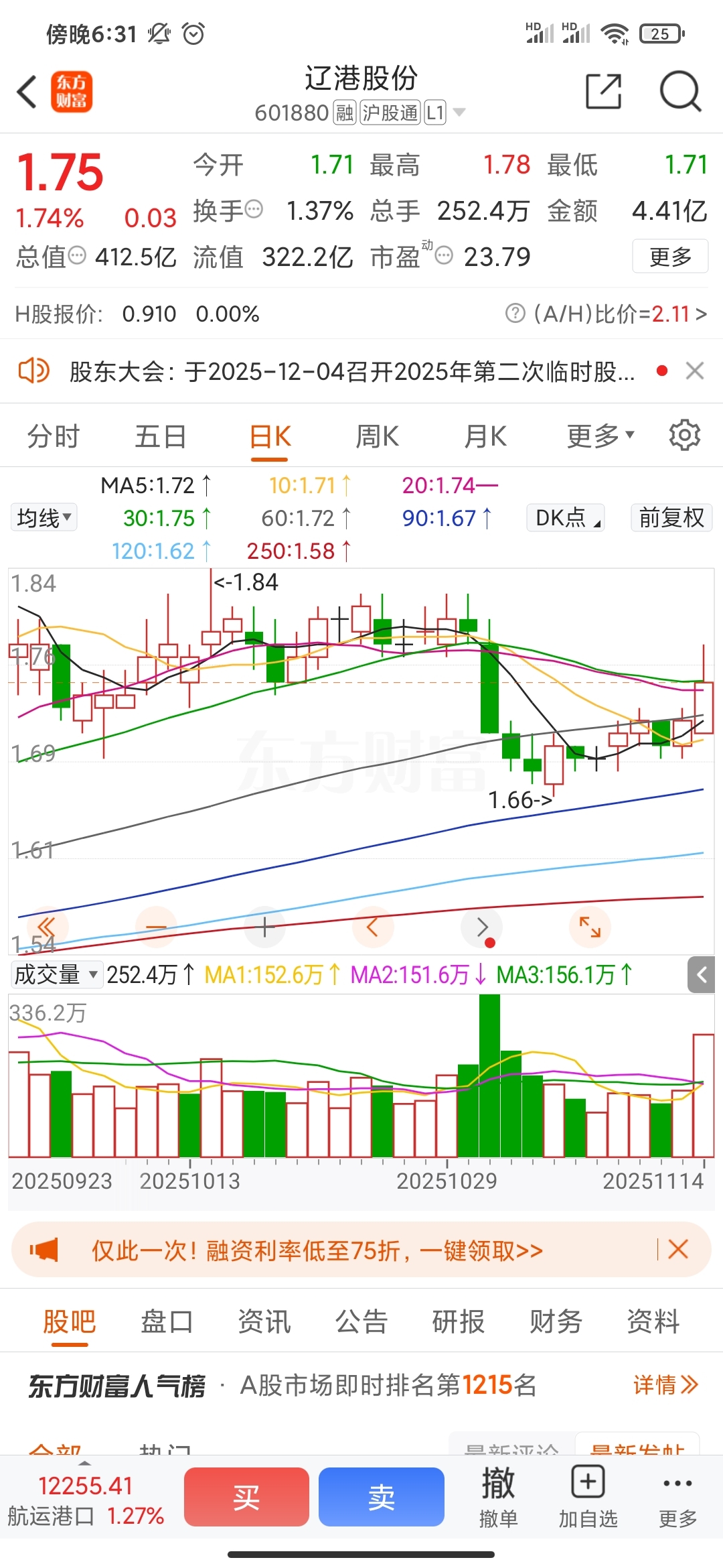 $辽港股份(SH601880)$ 一月没涨也没跌下半个月怎么样