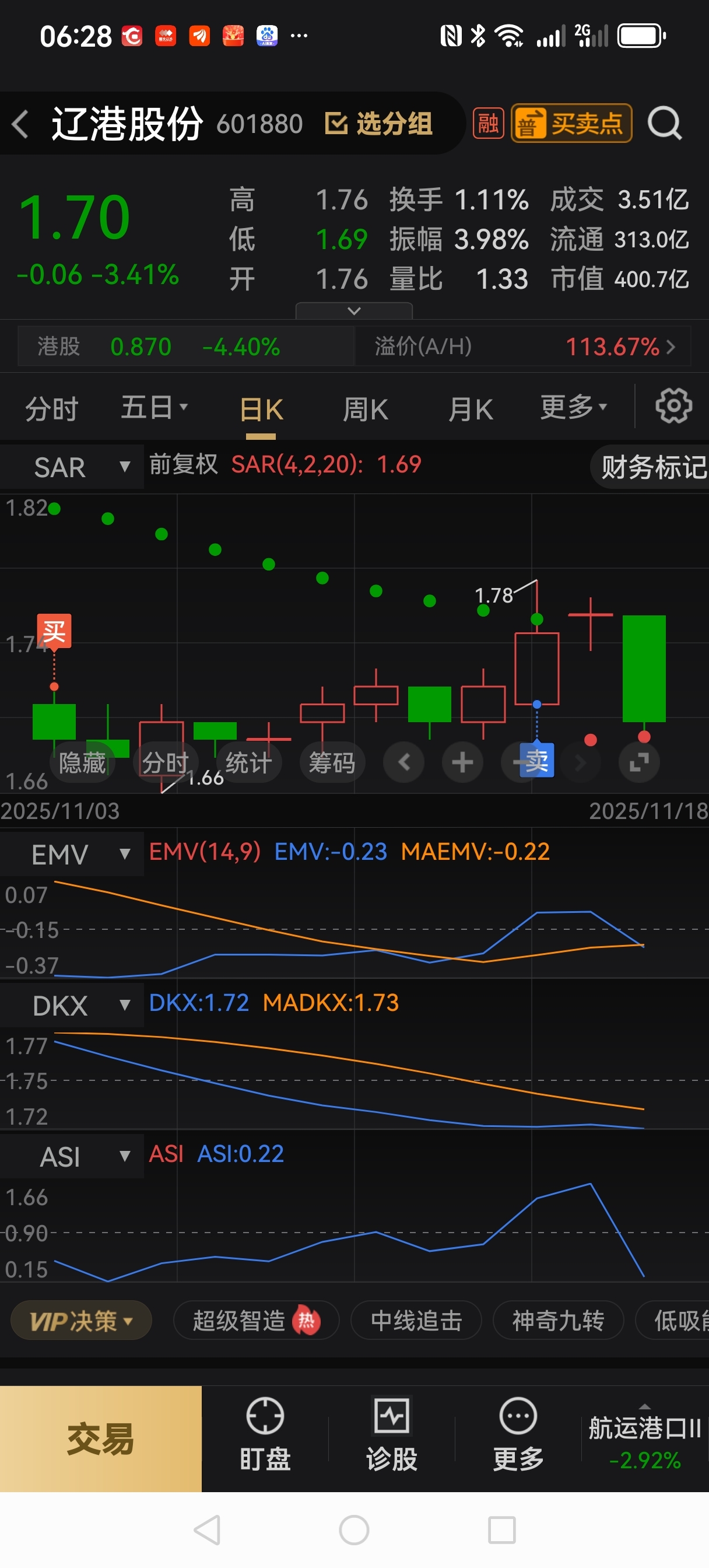 辽港股份,建仓1.68,清仓1.73,委托挂单1.68,买回,多了不要。