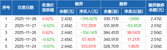 辽港股份:融资净偿还316.62万元,融资余额2.42亿元(11-28)