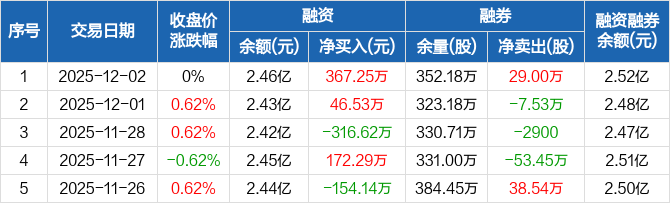 辽港股份:融资净买入367.25万元,融资余额2.46亿元(12-02)