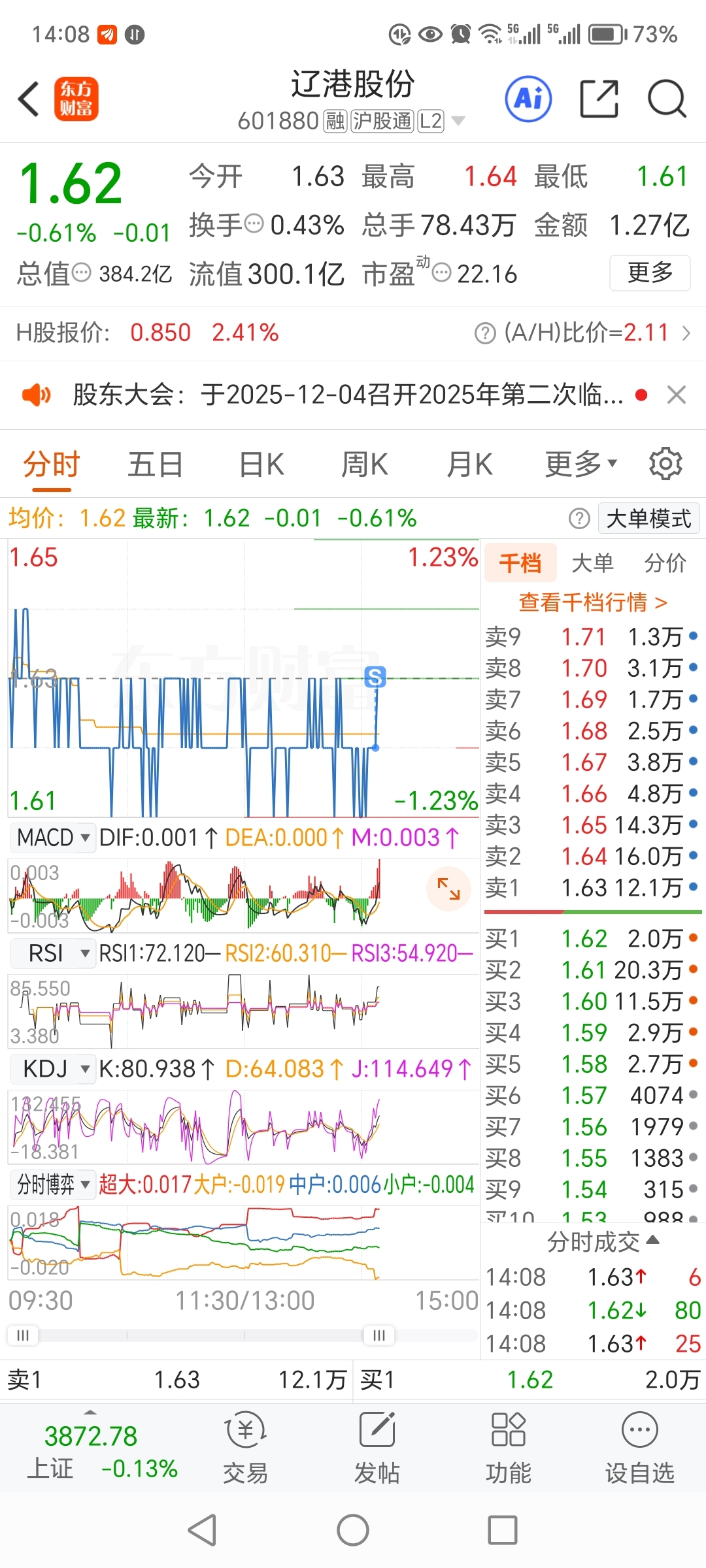 $辽港股份(SH601880)$ 撑不住了,走了,希望明天起连续三个以上涨停让我结结实实后悔……
