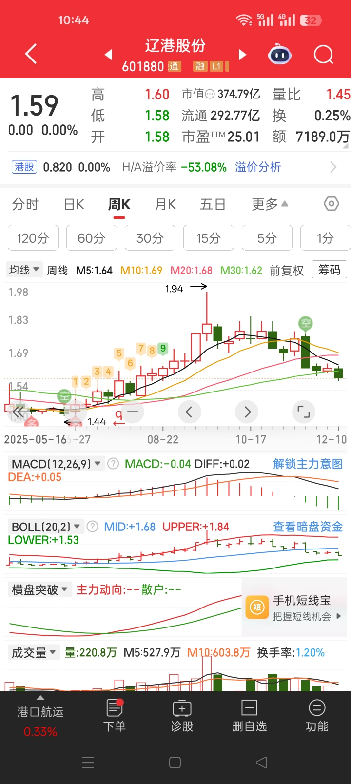 $辽港股份(SH601880)$ 辽宁港怎么了,与港口板块背离。