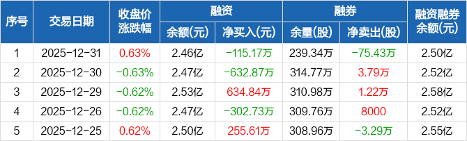 辽港股份:融资净偿还115.17万元,融资余额2.46亿元(12-31)