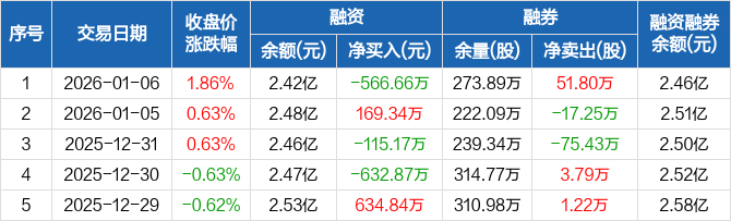 辽港股份:融资净偿还566.66万元,融资余额2.42亿元(01-06)