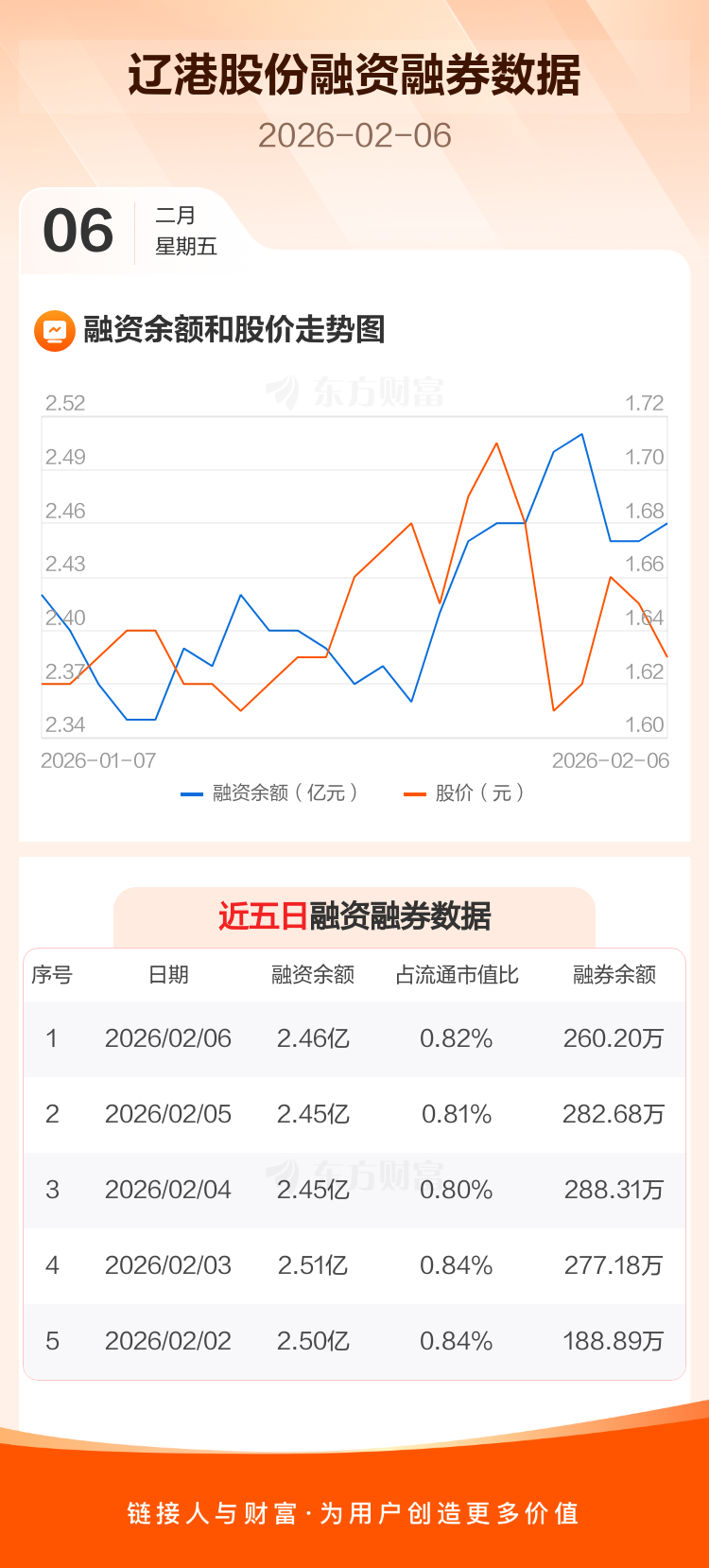 交易所最新数据显示,辽港股份于2026年2月6日获融资买入2606.91万元,融资偿还2529.87万元,当日融资净买入77.04万元。目前,该股融资余额2.46亿,占流通市值比例为0.82%。