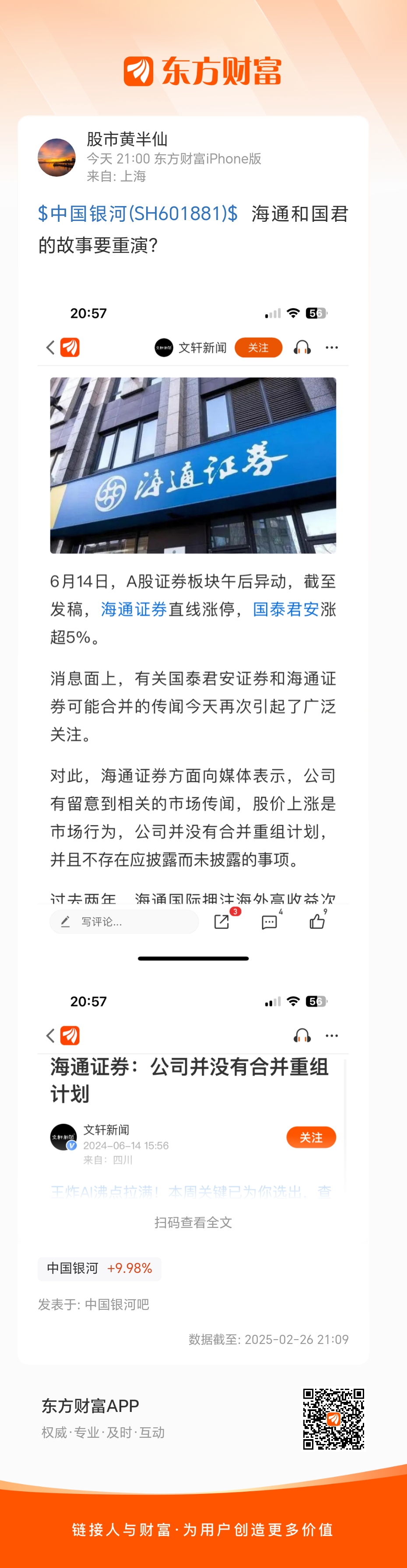$中国银河(SH601881)$  海通和国君的故事要重演?