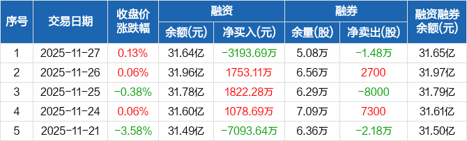中国银河:融资净偿还3193.69万元,融资余额31.64亿元(11-27)
