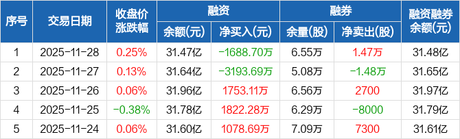 中国银河:融资净偿还1688.7万元,融资余额31.47亿元(11-28)