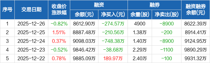 海天精工:连续4日融资净偿还累计1272.19万元(12-26)
