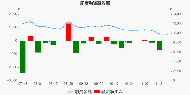 江河集团本周(2025/11/24-2025/11/28)累计跌幅达0.99%,截至11月28日最新股价报收7.98元。从增量上来看,11月24日至11月28日融资买入交易规模1902.3万元,融资偿还规模1931.69万元,期内融资净偿还29.39万元。从存量上来看,截止11月30日,江河集团融资融券余额9862.32万元,其中融资余额规模9811.97万元,融券余额规模50.35万元。