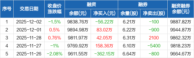 江河集团:融资净偿还56.22万元,融资余额9838.76万元(12-02)