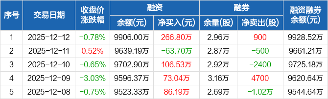 江河集团:融资净买入266.8万元,融资余额9906万元(12-12)