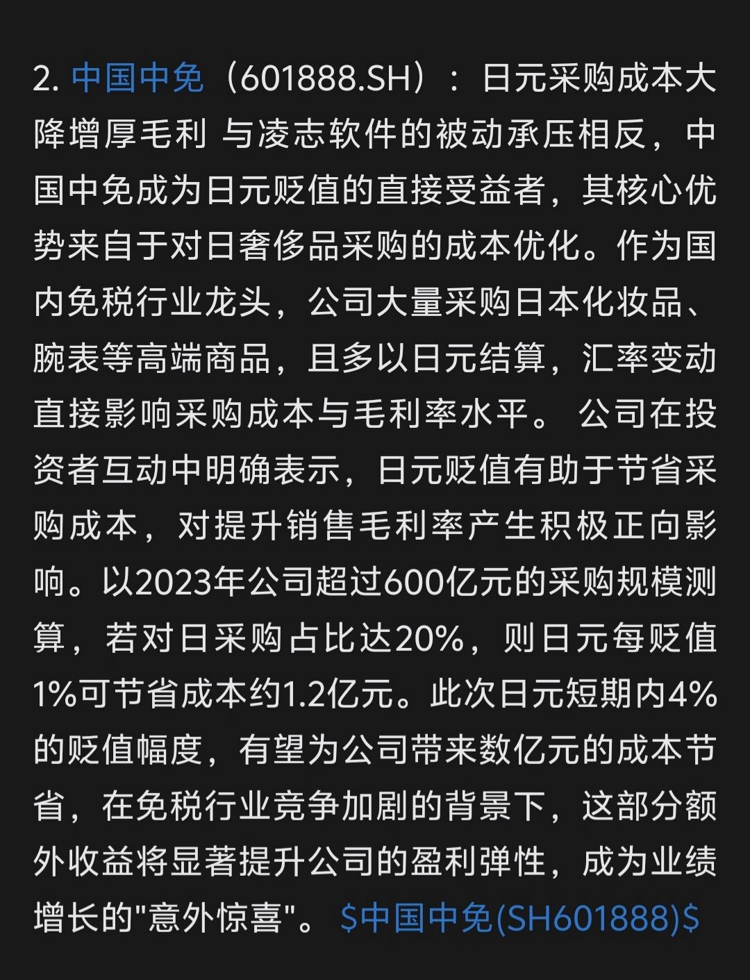 $中国中免(SH601888)$ 这个日元编制算是一个计划外的利好因素,这个中免算是搂草打兔子,顺便白赚了一笔净利。