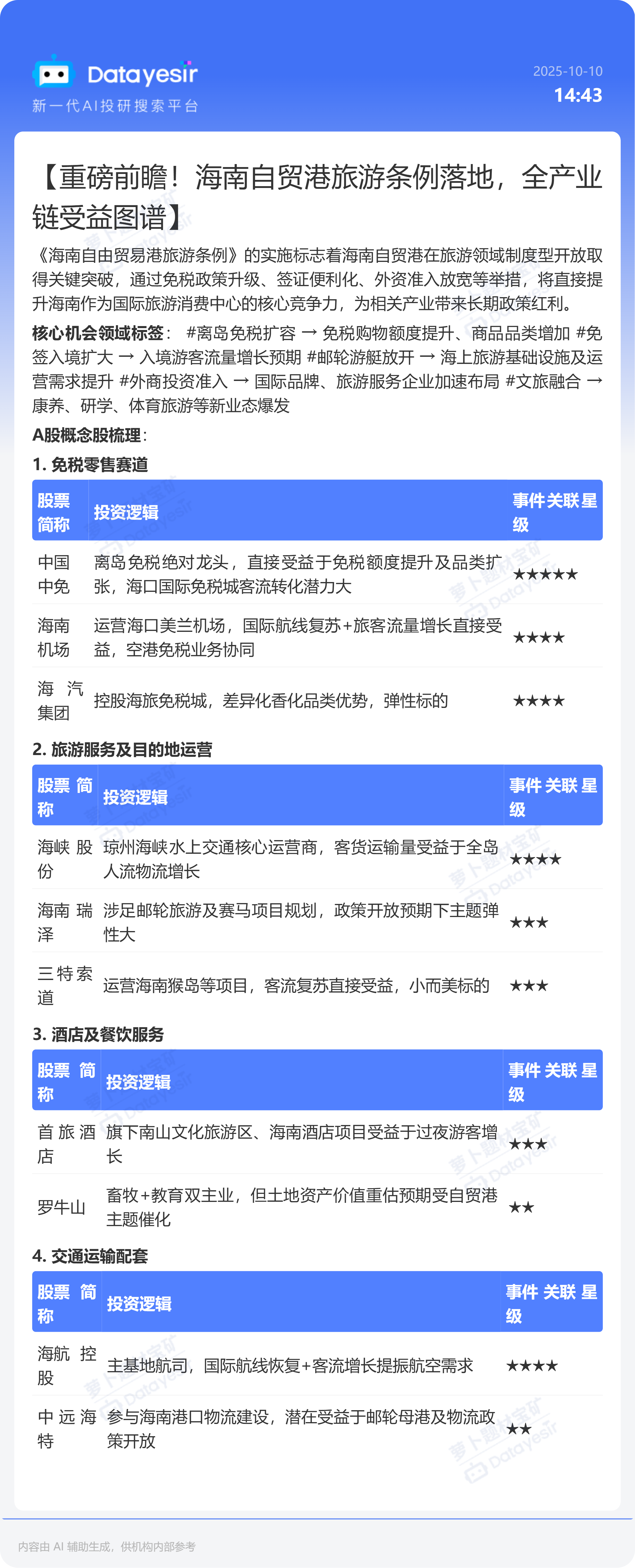 【重磅前瞻!海南自贸港旅游条例落地,全产业 链受益图谱】