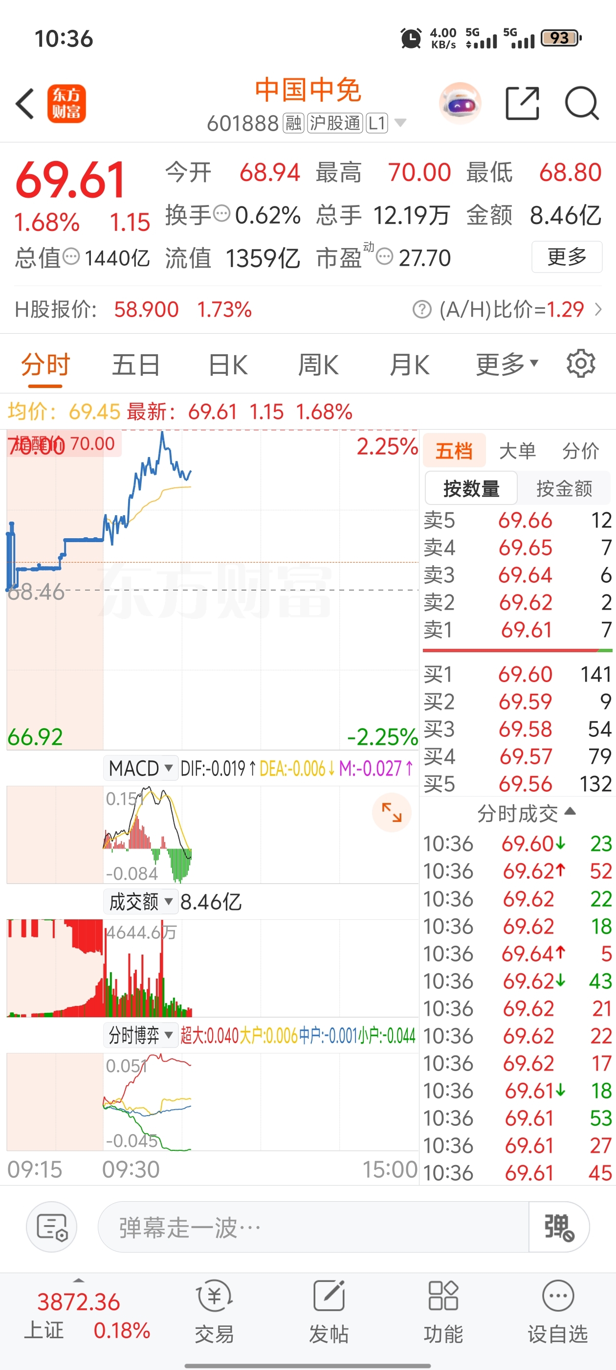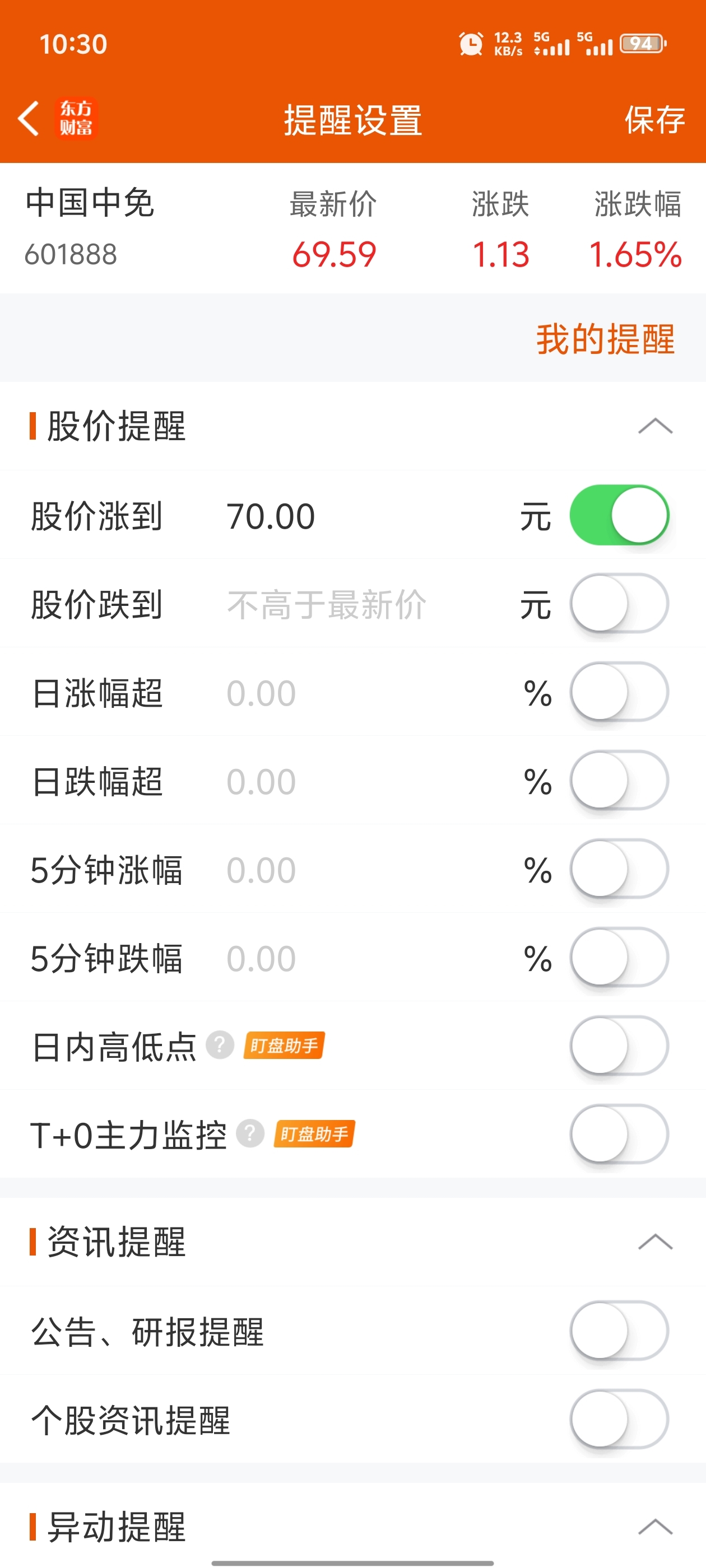 $中国中免(SH601888)$ 貂毛,设置的70提醒,结果你摸到就下来了