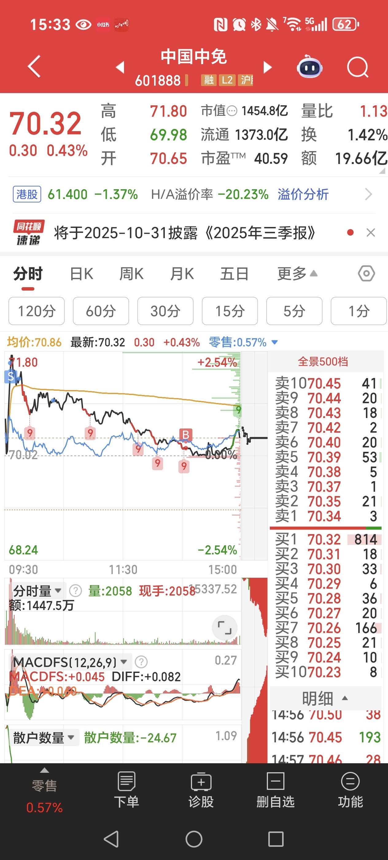 $中国中免(SH601888)$ 简单做个t,继续持有