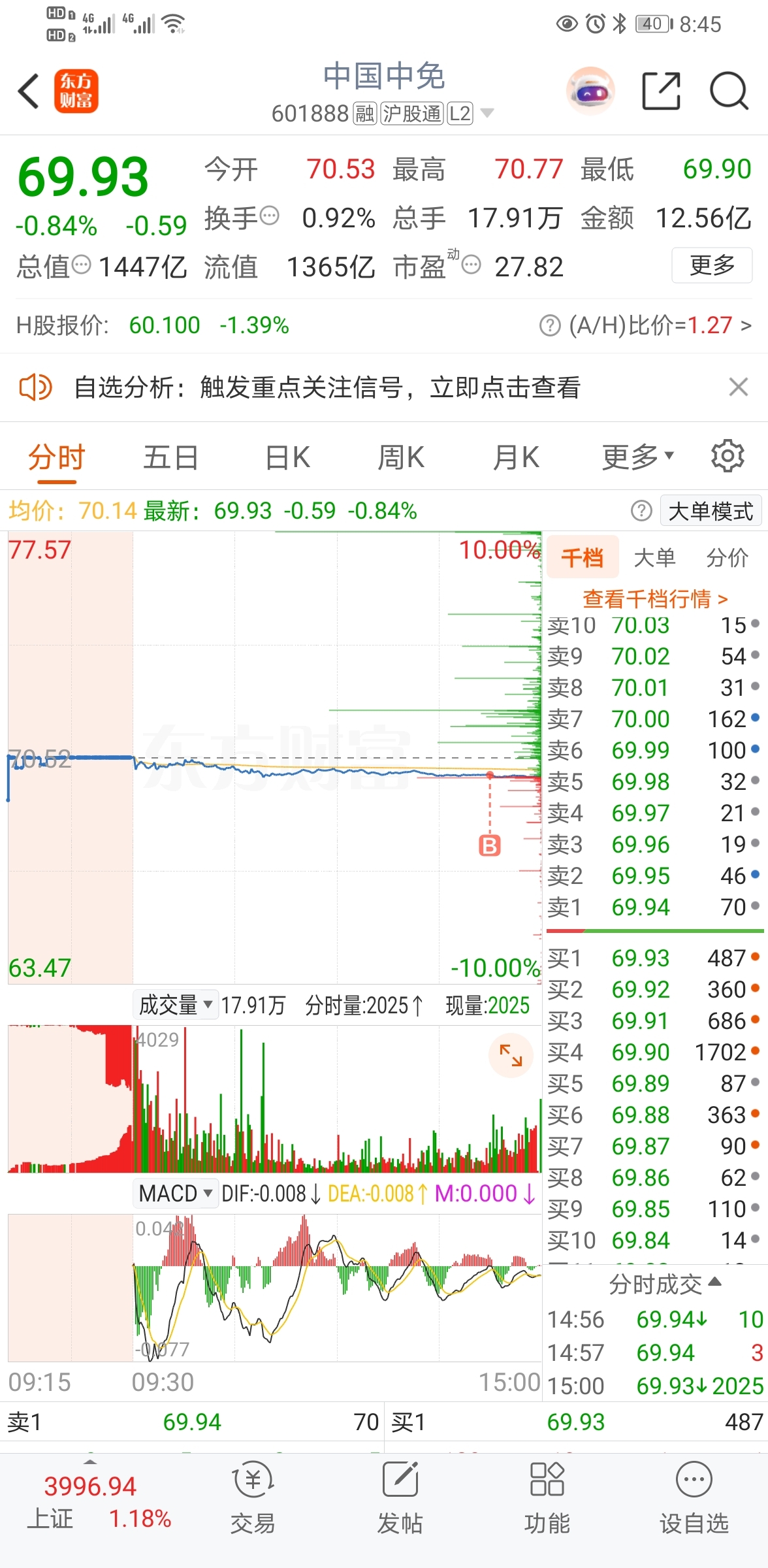 $中国中免(SH601888)$ 可能今天我买了,买啥崩啥。我觉得我买的点已经够低了,还有更低。