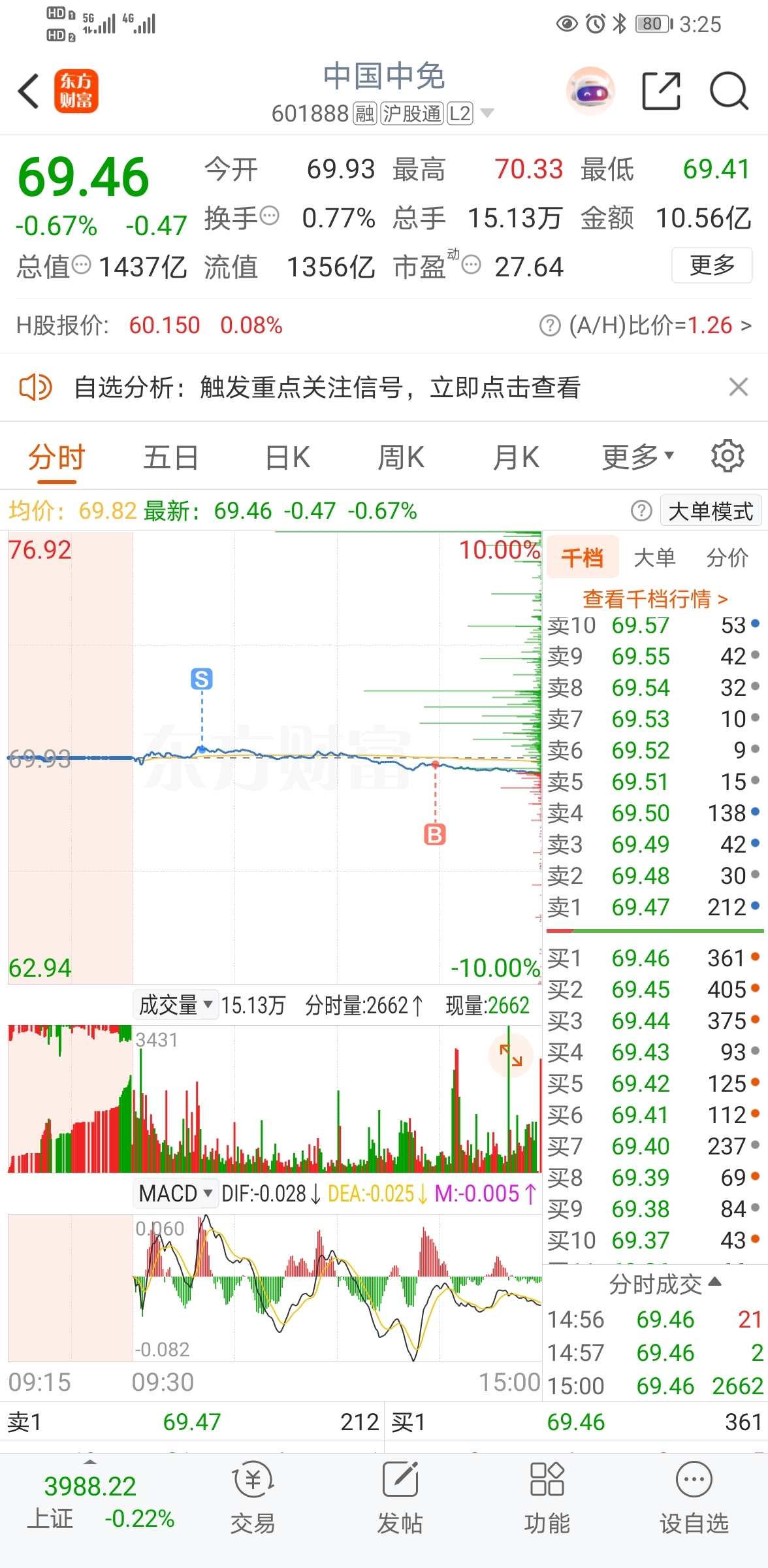 $中国中免(SH601888)$ 看晚了,怒挣200元