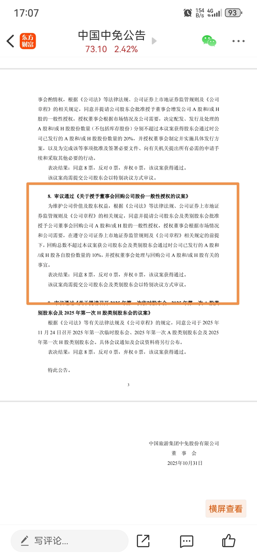 $中国中免(SH601888)$ 历害了,回购10%的股份。