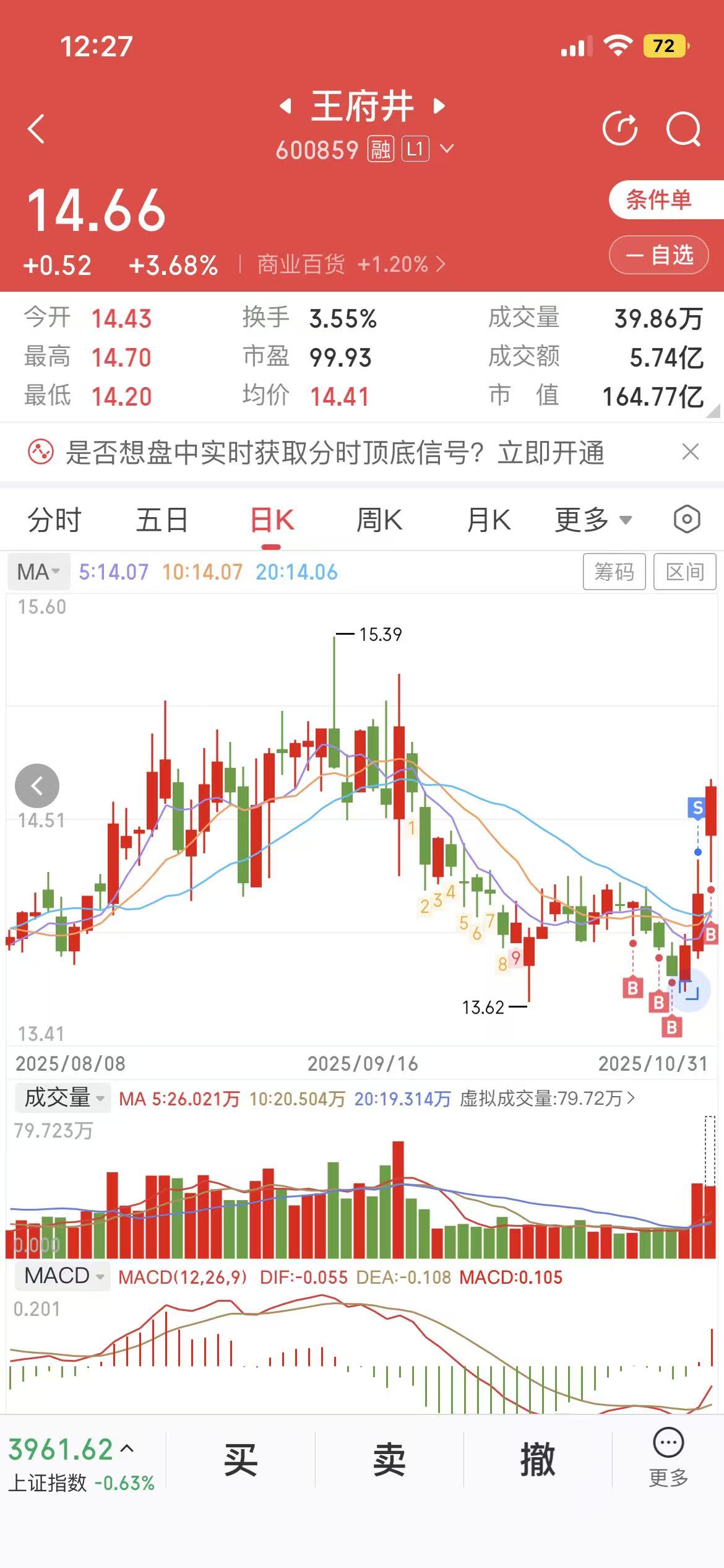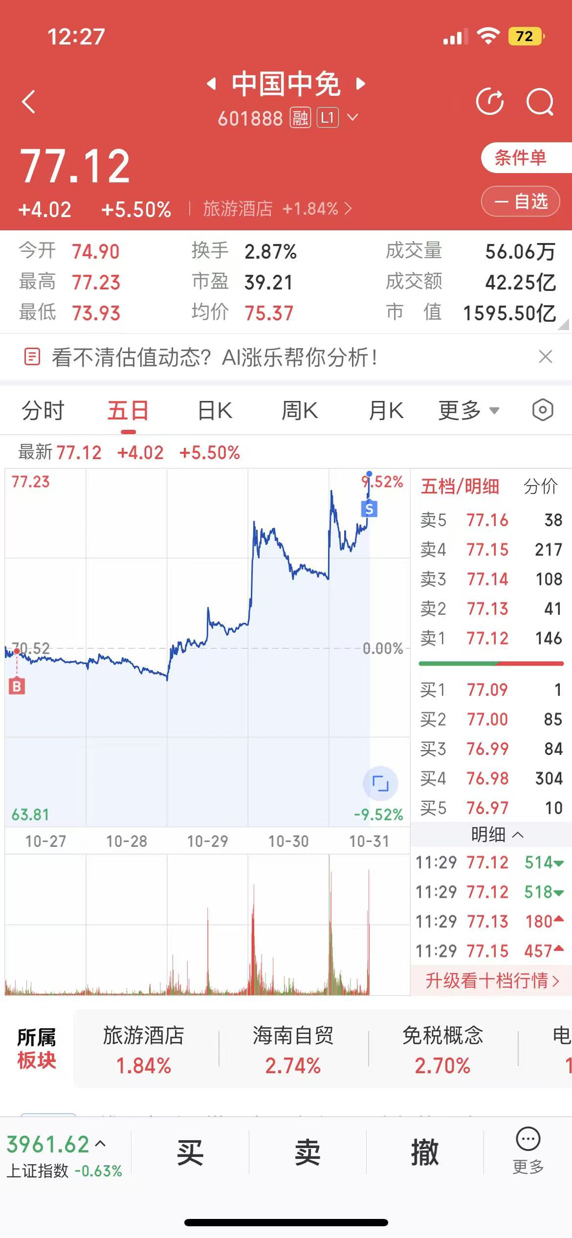周一入场,推测封关在即提前打预期估计就是应在11月,拿了点先手。没想到政策一出这两天就来了#王府井#中国中免