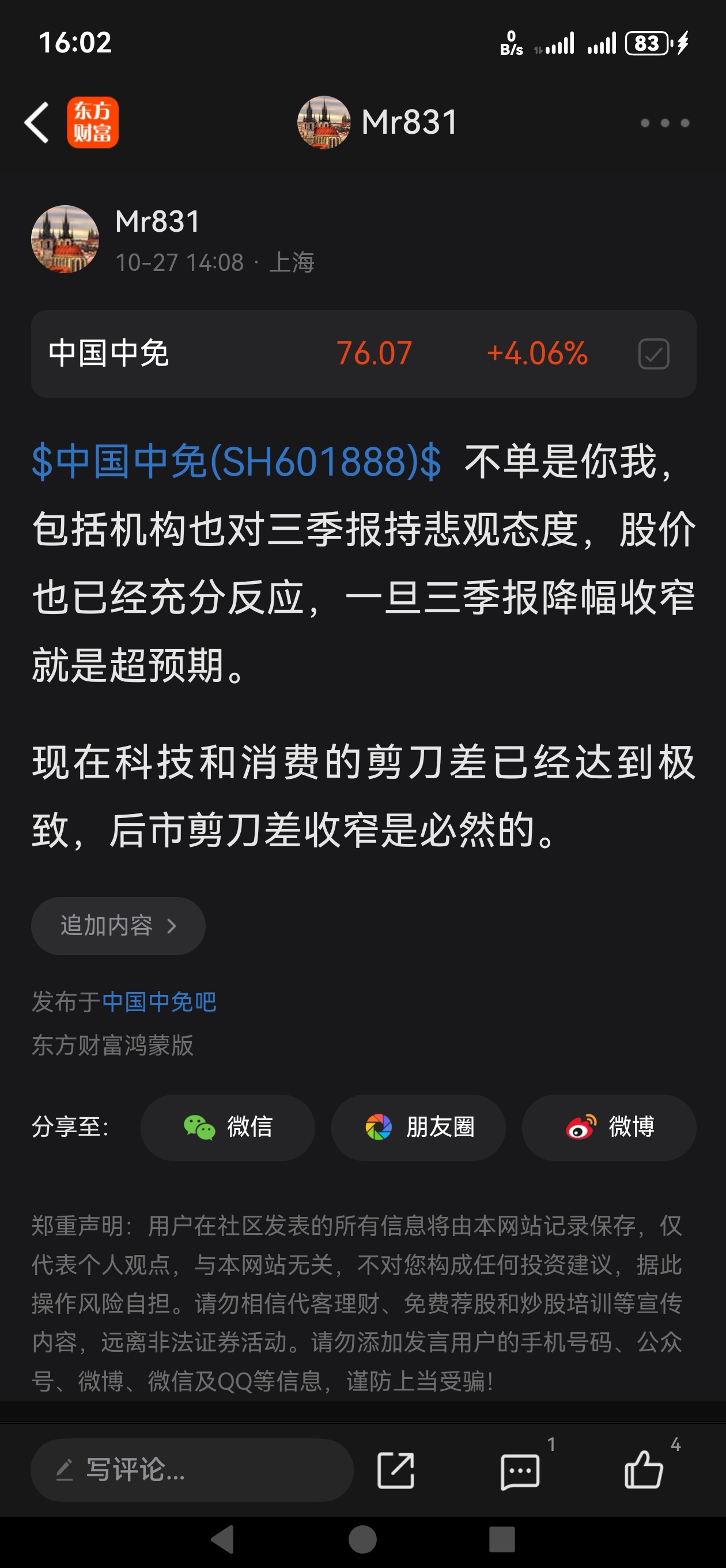 温馨提示: 1.根据《证券法》规定,禁止编造、传播虚假信息或者误导性信息,扰乱证券市场;2.用户在本社区发表的所有资料、言论等仅代表个人观点,与本网站立场无关,不对您构成任何投资建议。用户应基于自己的独立判断,自行决定证券投资并承担相应风险。《东方财富社区管理规定》