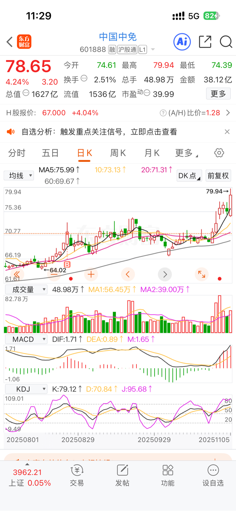 $中国中免(SH601888)$ 听说中免是A股的做t之王,可是我没有做t技术,只好原地不动了