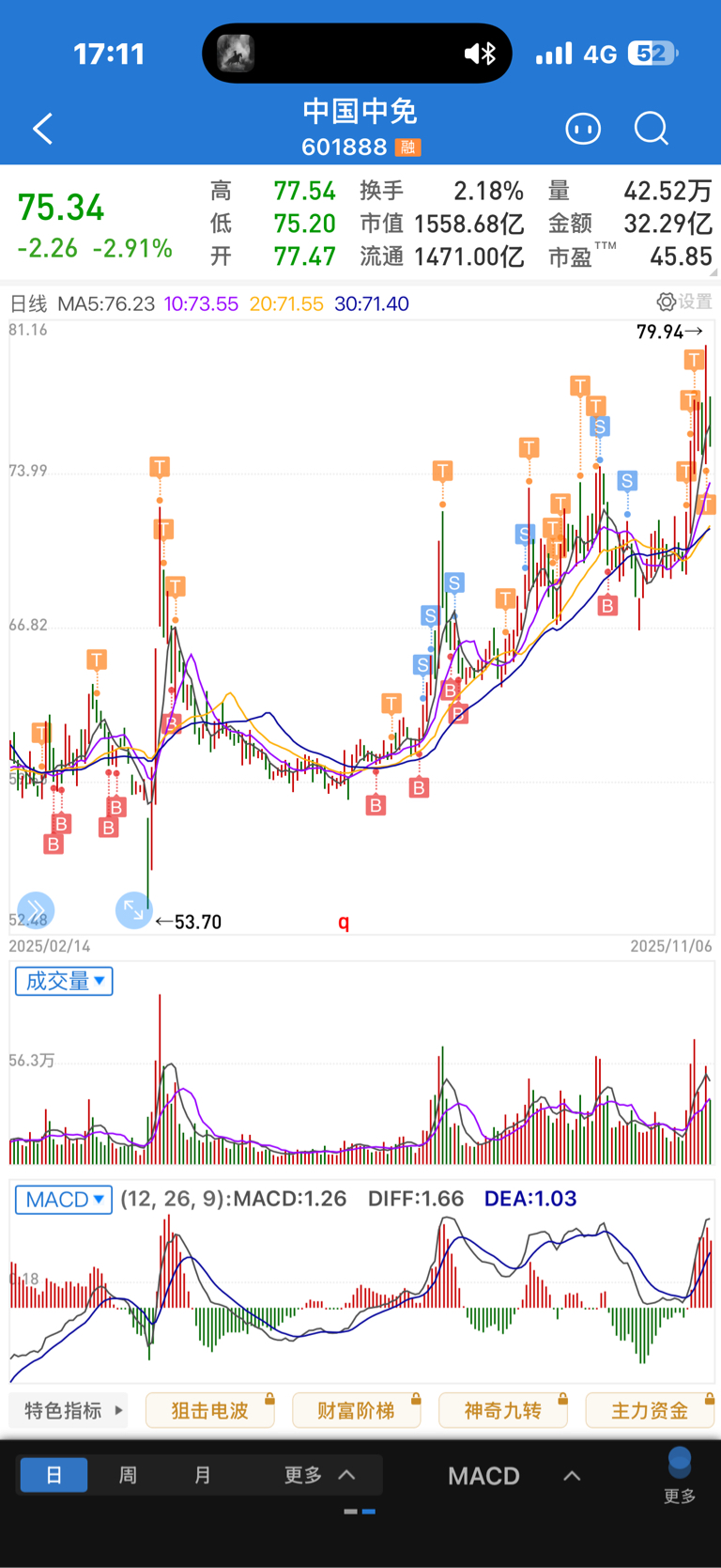 $中国中免(SH601888)$ 已经看不到成本线了 留5000底仓 70以下在坐t