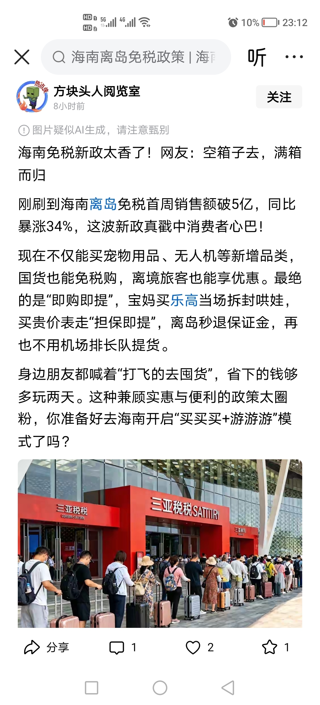 新华社报道,封关首周,免税新政首周成绩。