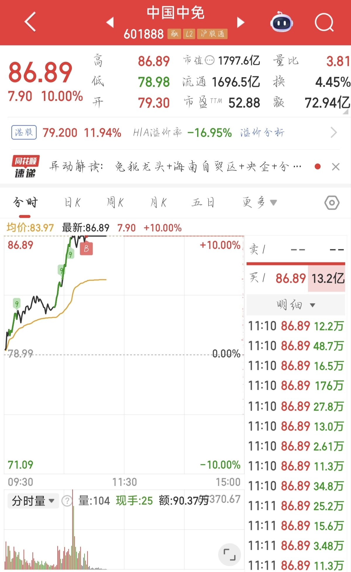 $中国中免(SH601888)$ 这种大屁股,明天应该能体面吧?