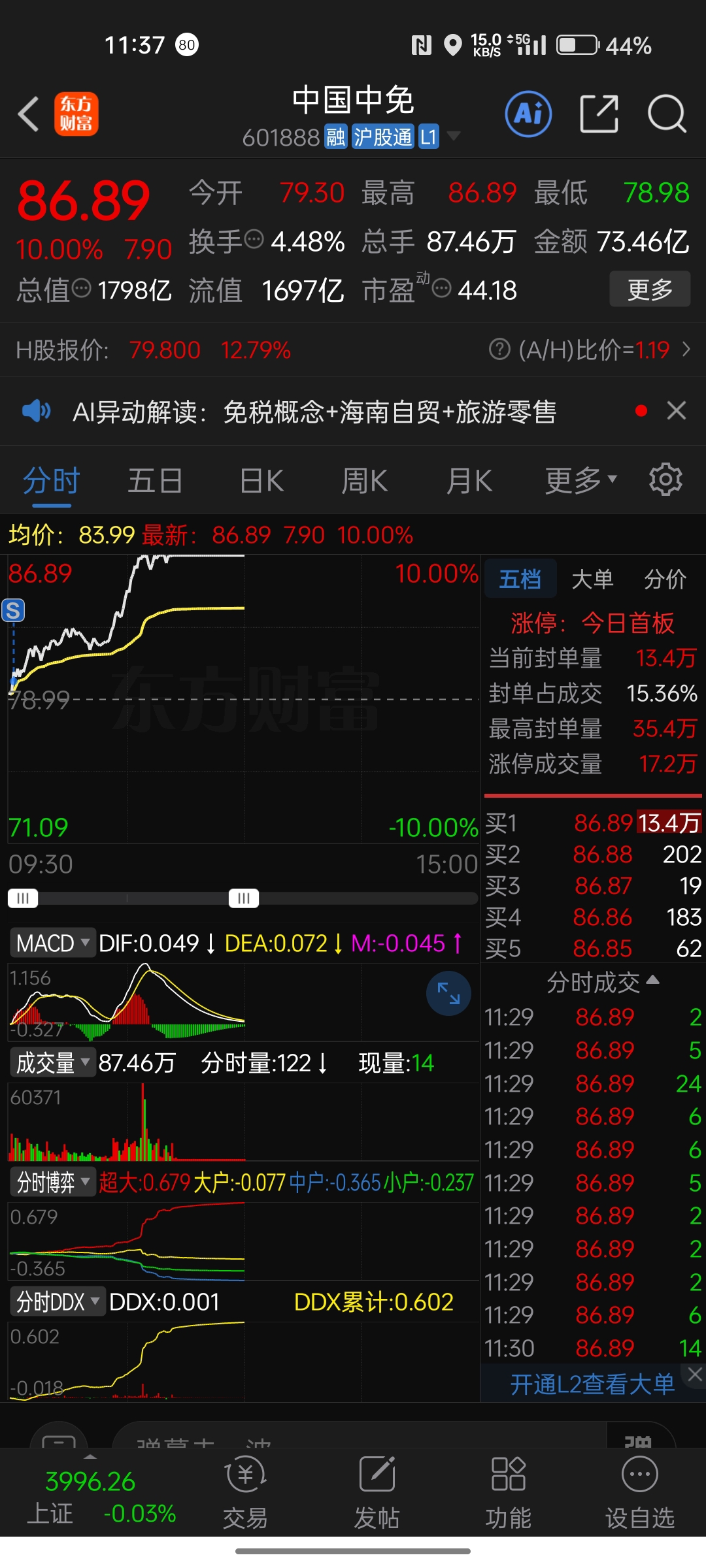 $中国中免(SH601888)$ 早上开盘就卖了20万,大腿拍肿,赚了200走人,真是坏人
