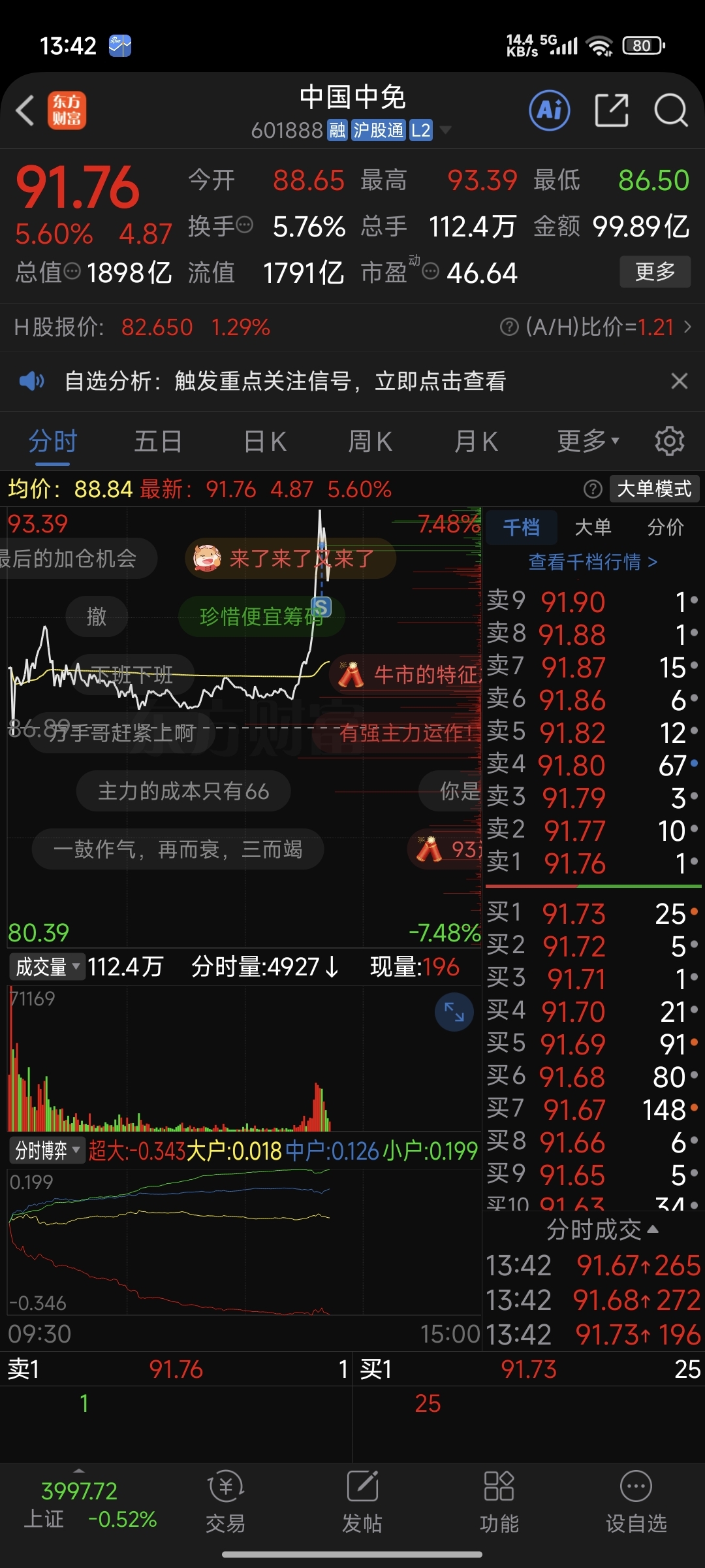 $中国中免(SH601888)$ $航发科技(SH600391)$ 七个点卖了,舒服呀,一个星期不到,赚了快20%,没想到,涨太快的票,又不是封板,我也不喜欢