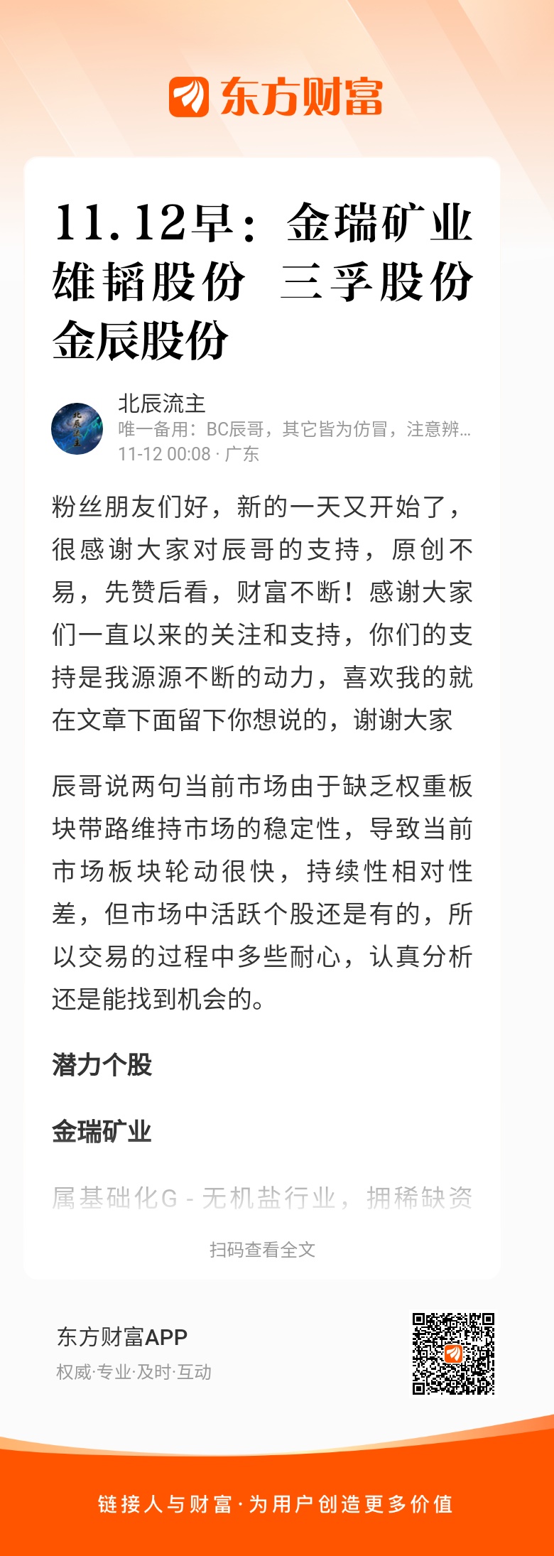 粉丝朋友们好,新的一天又开始了,很感谢大家对辰哥的支持,原创不易,先赞后看,财富不断!感谢大家们一直以来的关注和支持,你们的支持是我源源不断的动力,喜欢我的就在文章下面留下你想说的,谢谢大家