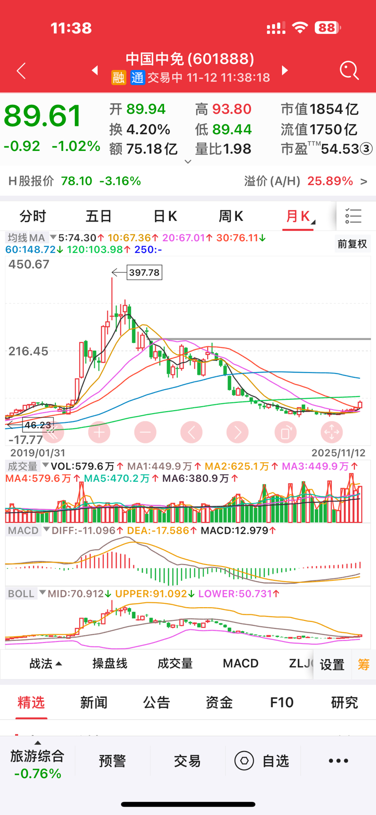 $中国中免(SH601888)$ 月线大圆弧底,仔细看还有个小W底,均线粘合上穿,日周月金叉共振,大家淡定拿住筹码,别被洗出去!日线浅水洗等5日线上移.一年必到200多!中免就是消费里的工业富联,你们看工业富联从20涨到83.88只用了四个月!那中免从80到240用一年有何不可!