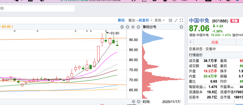 $中国中免(SH601888)$ 2卖区域不断诱多,目前已经形成小平台的头部,这里不建议大家进来操作了,60多的时候我天天喊,现在我一声都不吭。