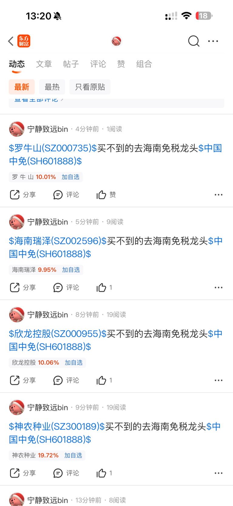 我又是股吧又是抖音宣传你海南概念龙头,今天起飞了!结果你是个杂毛全是涨停啊