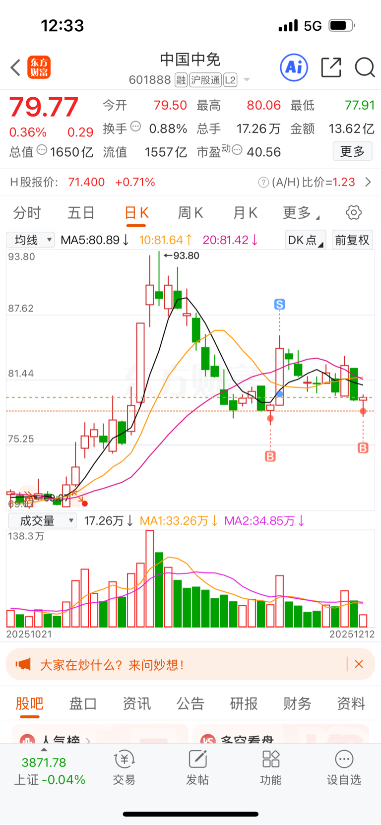$中国中免(SH601888)$ 上波卖飞了我又回来了