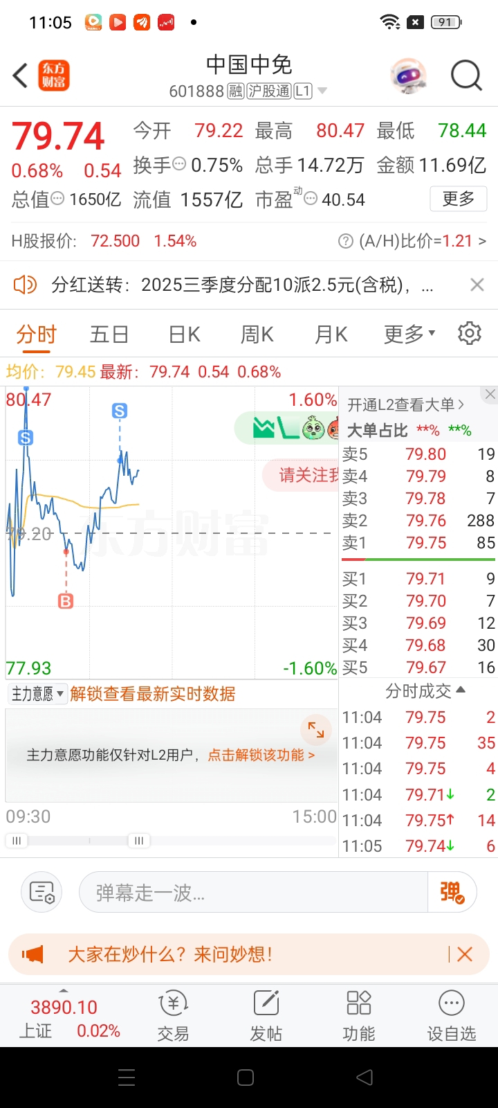 $中国中免(SH601888)$ 今天收盘得站上80.30,不然趋势有变,先半仓观望吧